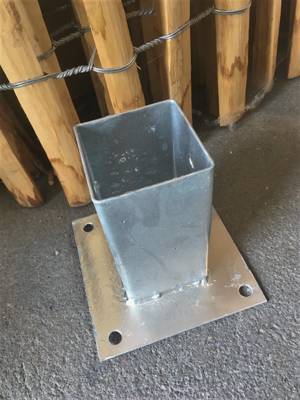 Pied de poteau pour clôture à boulonner.