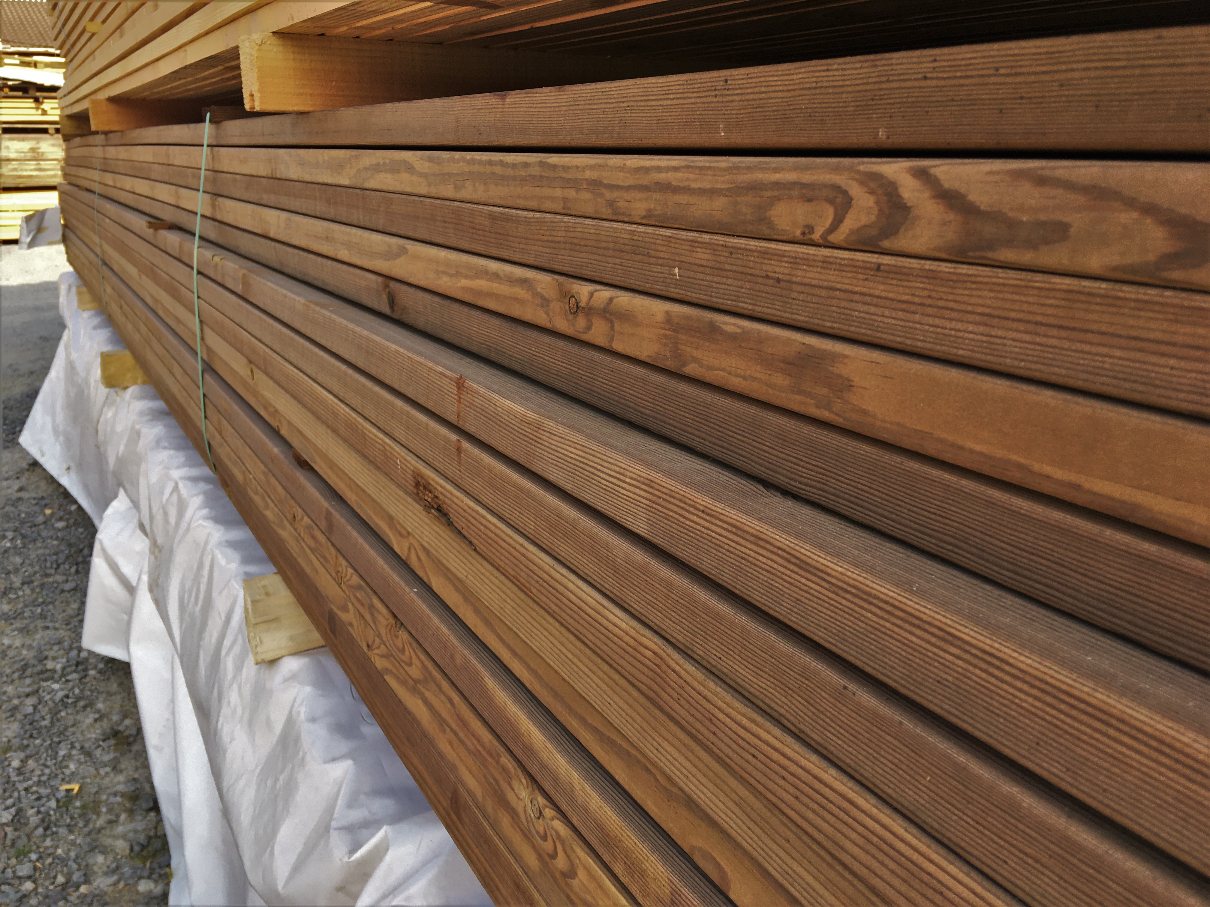 Lames de terrasse profil lisse en Pin. Qualité US - Classe 4. Couleur marron.