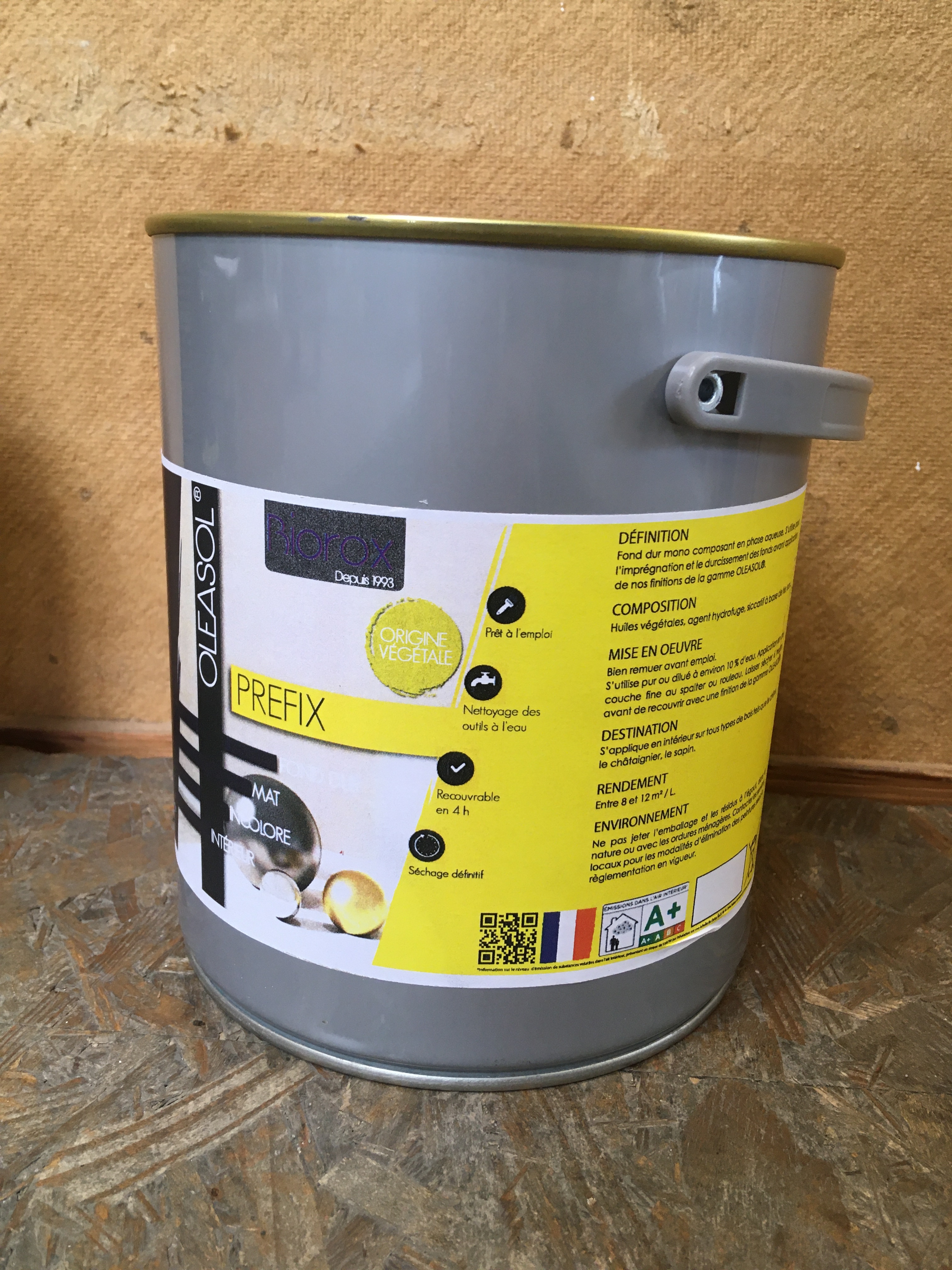 Fond dur d’origine biosourcée en phase aqueuse pour l’imprégnation des boiseries avant l’application des finitions huiles et vernis de la gamme OLEASOL.