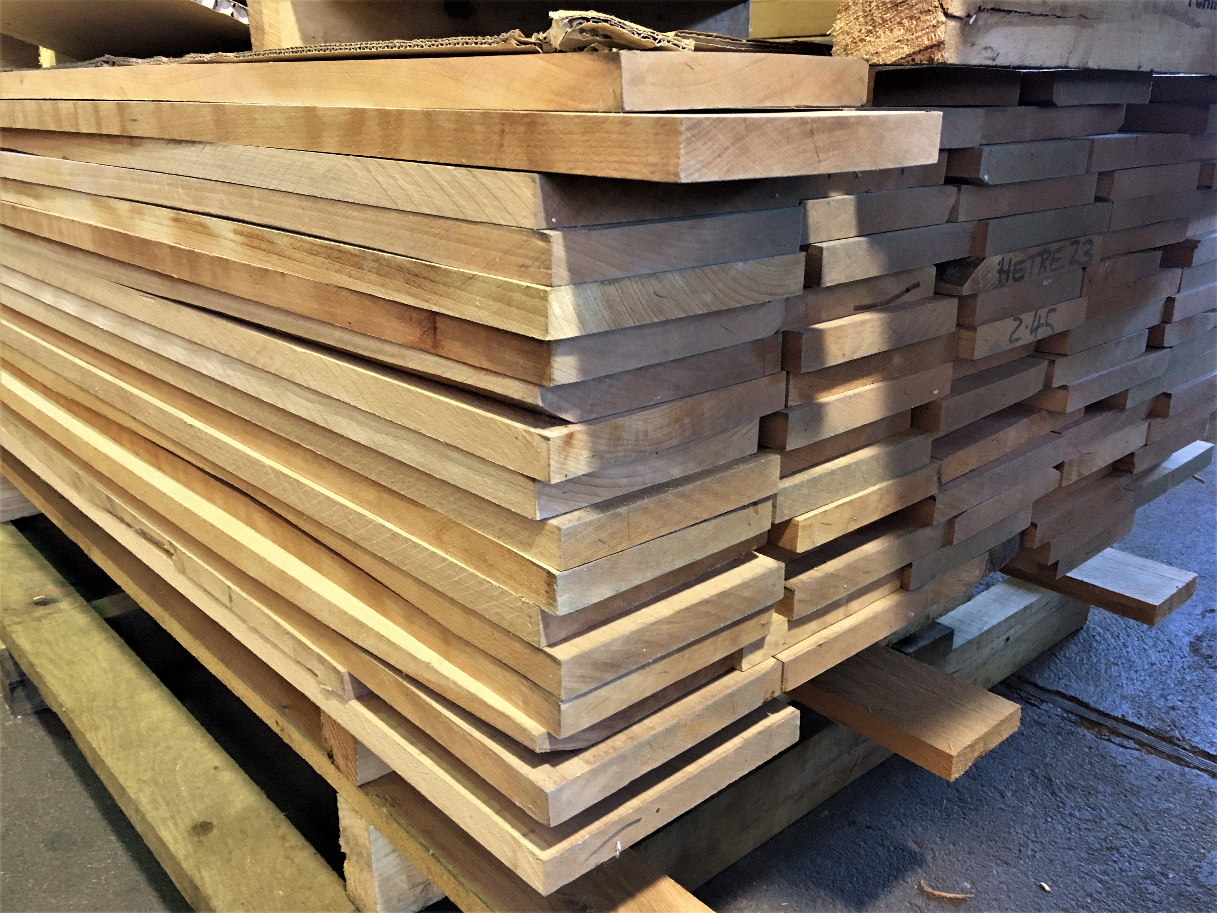 Planches rabotées en hêtre.