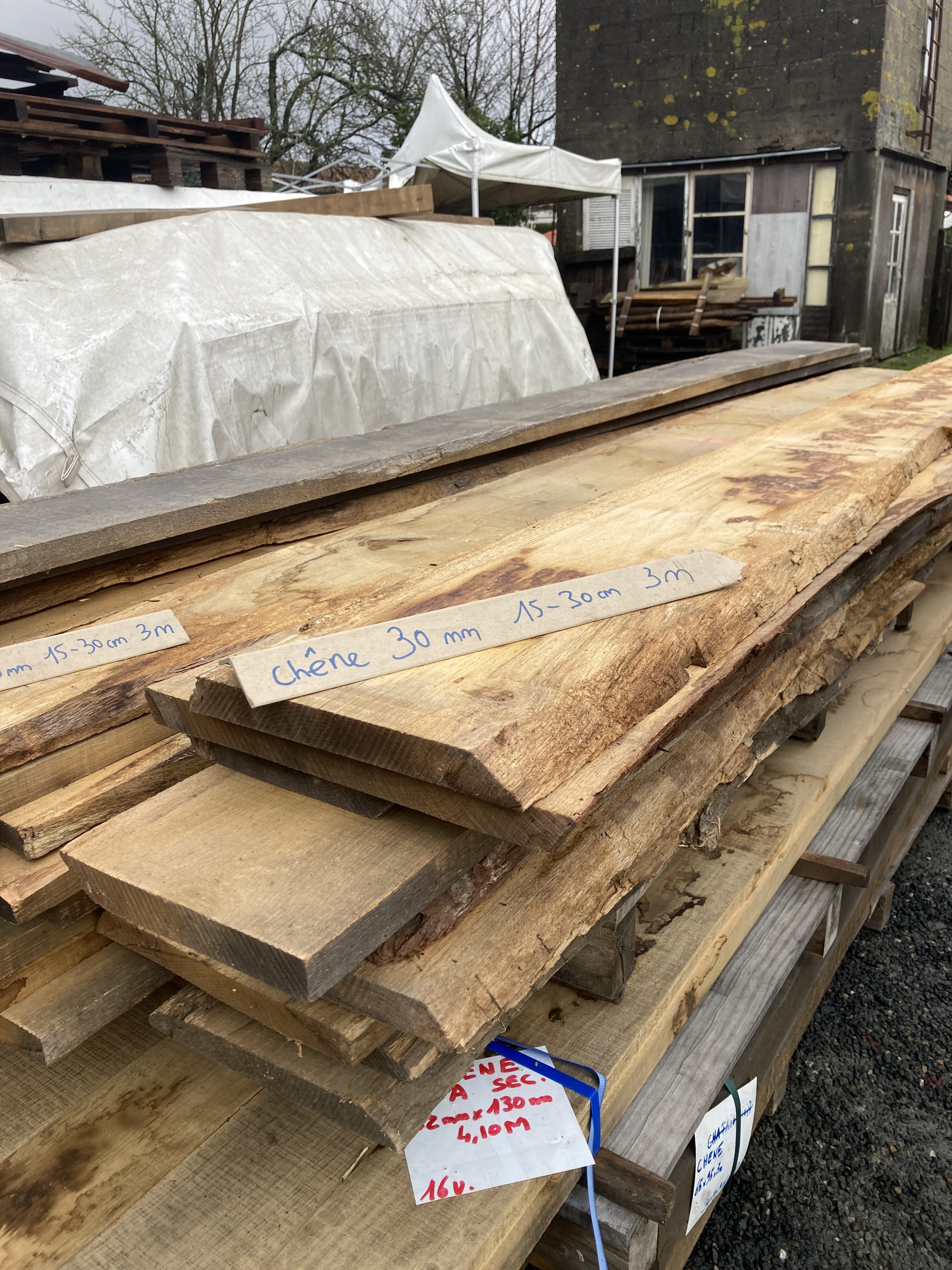 Planches brutes chêne. Sec.